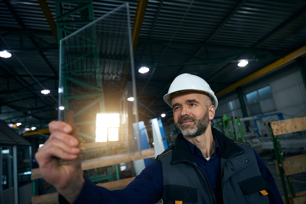 At the beginning of the glass production process, large sheets of raw glass are cut to specific dimensions. This stage ensures