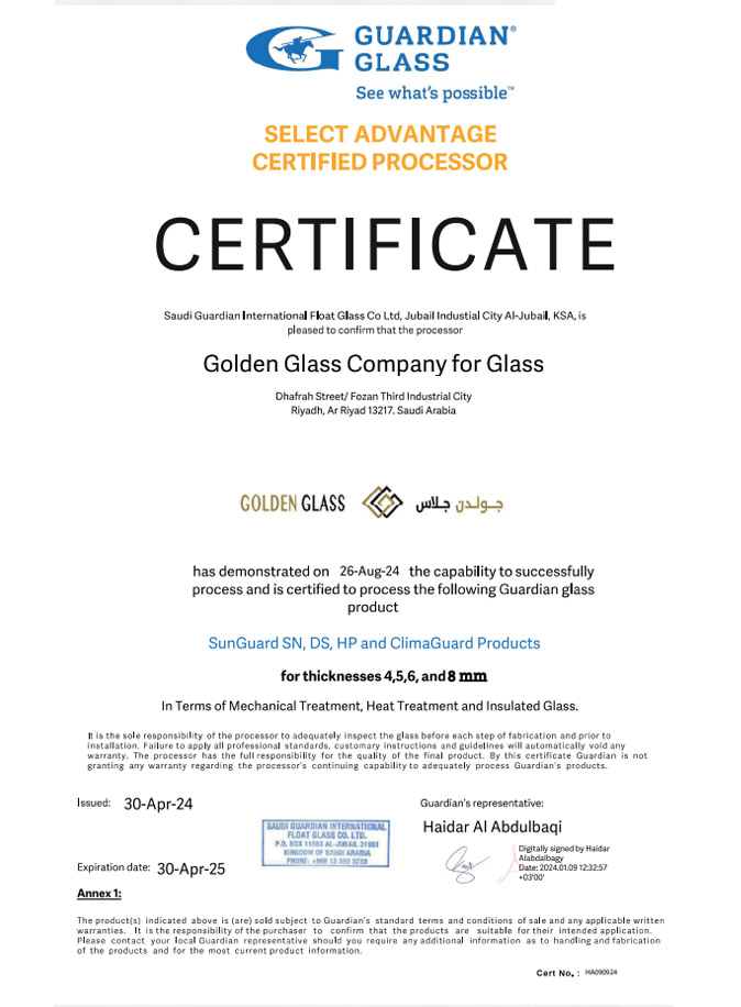 Golden Glass Company Sunlux, iplus, Stopray Smart, Stopray Ace, Stopray Vision📍 Yanbu, Saudi Arabia, September 2024 Valid until September 2025